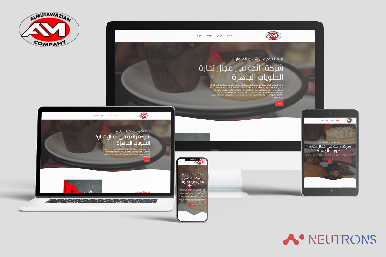 A website for Al-Motawazyan, importer and distributor of premium ready-made sweets, exclusive agent for brands such as NEU.